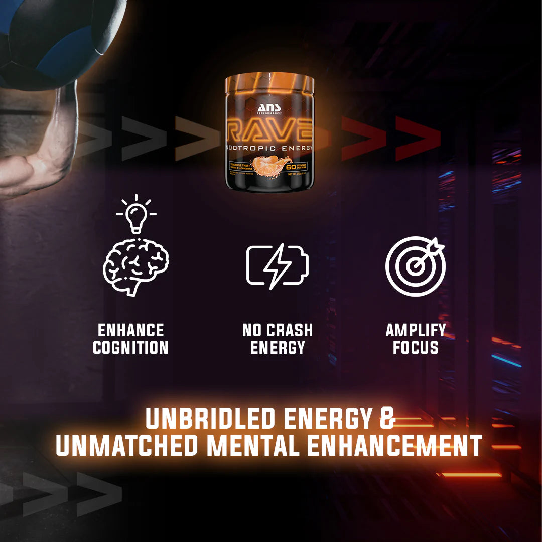 One of the most effective ways to power up your mind and body is with the use of nootropics (cognitive enhancers). RAVE combines several powerful nootropic ingredients that will energize your body and activate the brain to enhance the mind-muscle connection.